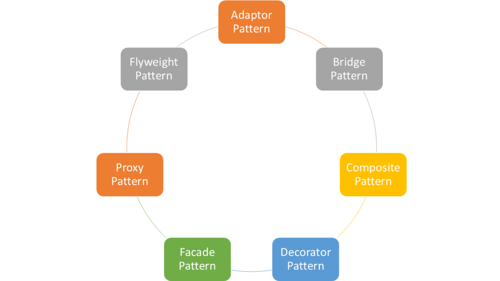 These patterns solve the problem of how the objects and classes are composed to provide a structure. There are 7 design patterns under this category. They define how objects and classes are connected to form a large structure. They are useful when the UI/Business/Data layer becomes tightly tangled. These patterns also help when classes take on too many responsibilities.